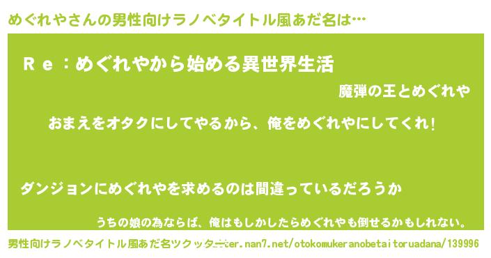 | ヒーロー風カッコイイあだ名 | 『友情の使者めぐれや』『仮面メグダー』 |