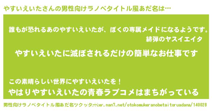 | ヘコむあだ名 | 『やすいえいた(笑)』『なまこ酢』 |