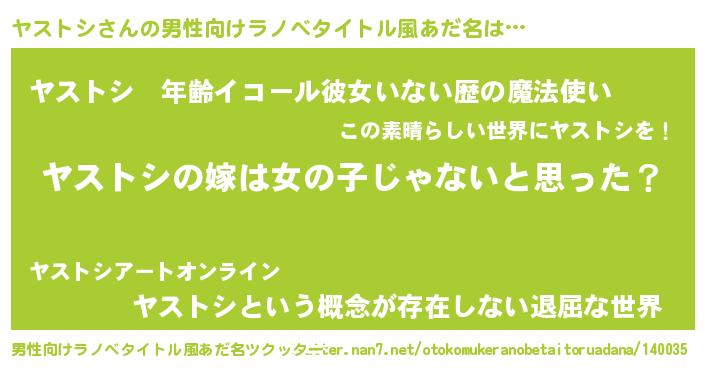 | 女子向けラノベタイトル風あだ名 | 『ヤストシ様がみてる』 |