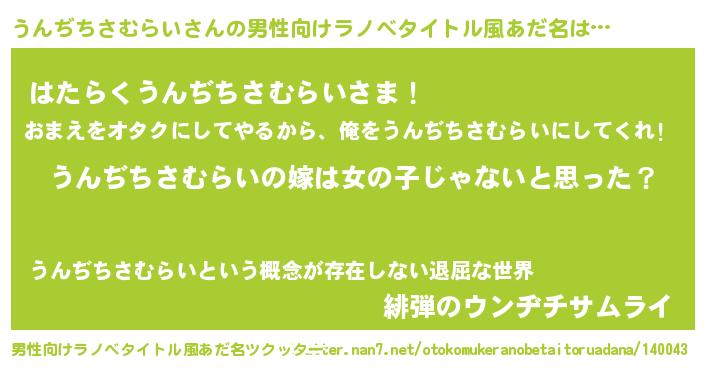 うんぢちさむらいさんの男性向けラノベタイトル風あだ名をツクッター!