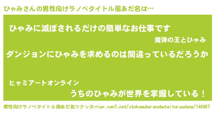 | 意味不明あだ名 | 『とにかく怪しいひゃみ』『自称ひゃみ』 |