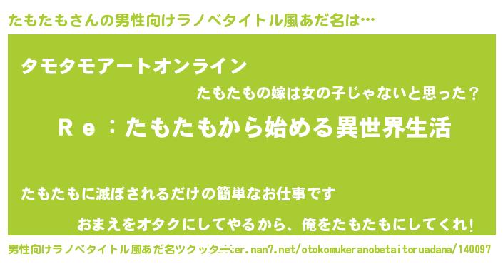 たもたもさんの男性向けラノベタイトル風あだ名をツクッター!