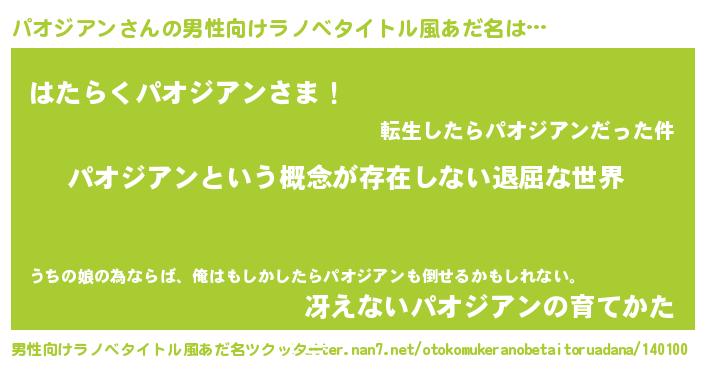 | 女子向けラノベタイトル風あだ名 | 『パオジアンの契約王妃』 |