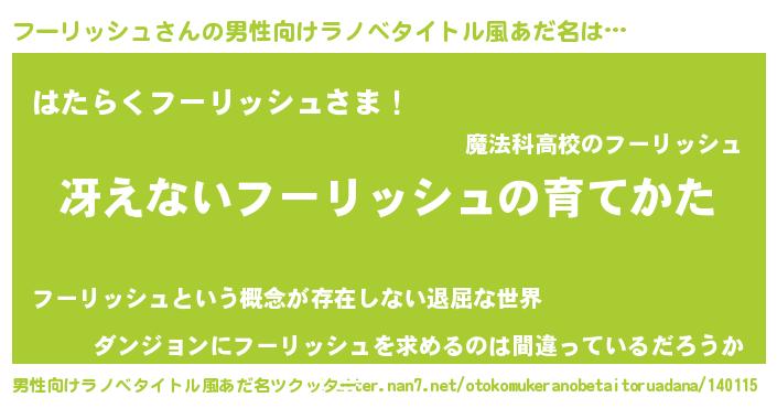 | ヘコむあだ名 | 『フーお』『フーリッシュ(爆)』 |