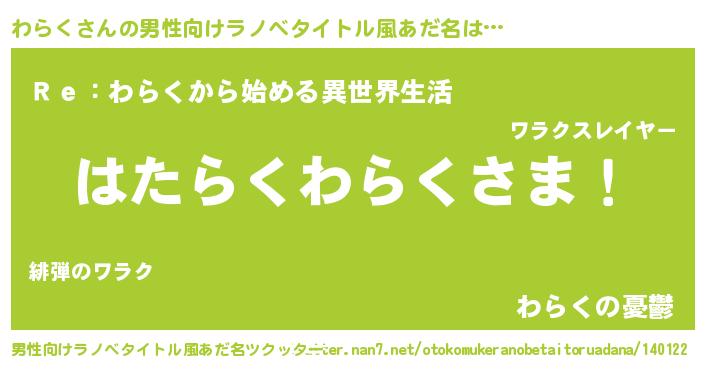 | 女子向けラノベタイトル風あだ名 | 『首の姫と首なしわらく』『闇のわらく』 |