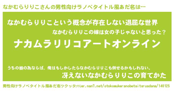 | ヘコむあだ名 | 『なかふぇ~』『なかむらりりこ(笑)』 |