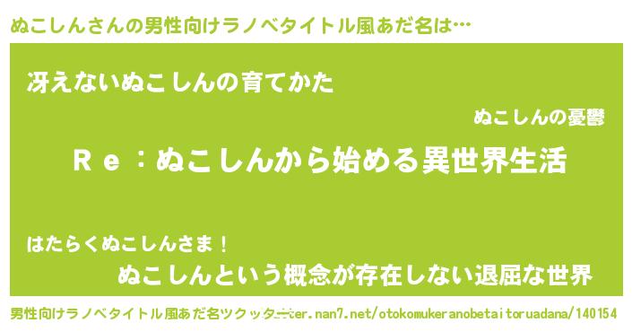 | ヘコむあだ名 | 『ぬこしん(苦笑)』『ぬこにー』 |