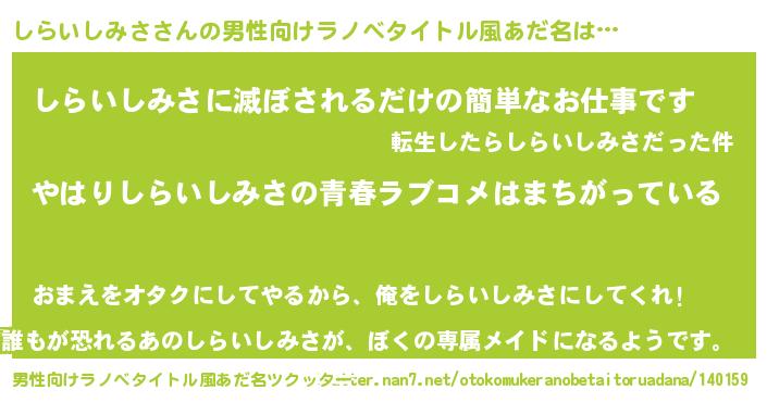 | 意味不明あだ名 | 『しらいしみさフォーエバー』 |