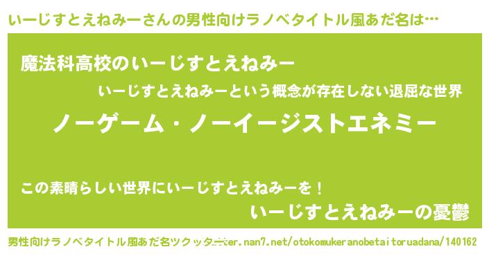 | 欧米人風あだ名 | 『ダニエルいーじすとえねみー』 |