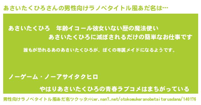 | 意味不明あだ名 | 『永久保存あさいたくひろ』 |