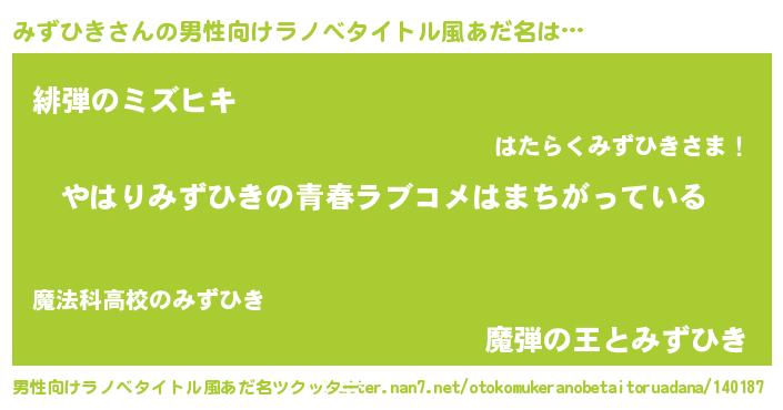 | 意味不明あだ名 | 『みずひきフォーエバー』『自称みずひき』 |