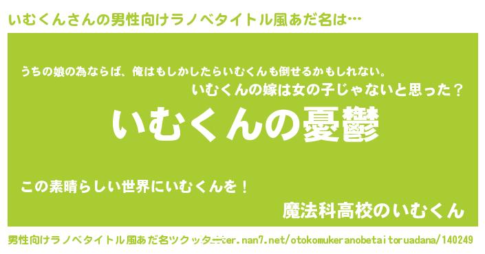 | 女子向けラノベタイトル風あだ名 | 『いむくん姫と円卓の騎士』 |