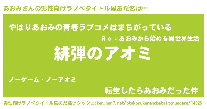 | 意味不明あだ名 | 『あおみフォーエバー』『自称あおみ』 |