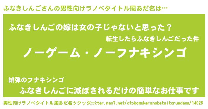 | 女子向けラノベタイトル風あだ名 | 『死神ふなきしんごの再婚』 |
