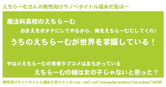 | 胡散臭い通販商品みたいなあだ名 | 『芸能人もオススメする高麗人参…その名も「えちらーむ」』 |