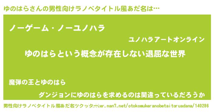 | 女子向けラノベタイトル風あだ名 | 『異世界で失敗しない100のゆのはら』 |