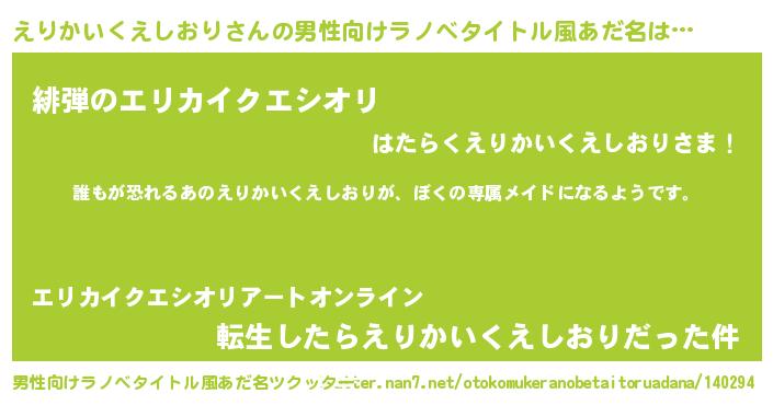 | 胡散臭い通販商品みたいなあだ名 | 『来世でも幸せになれる健康食品…その名も「えりかいくえしおり」』 |