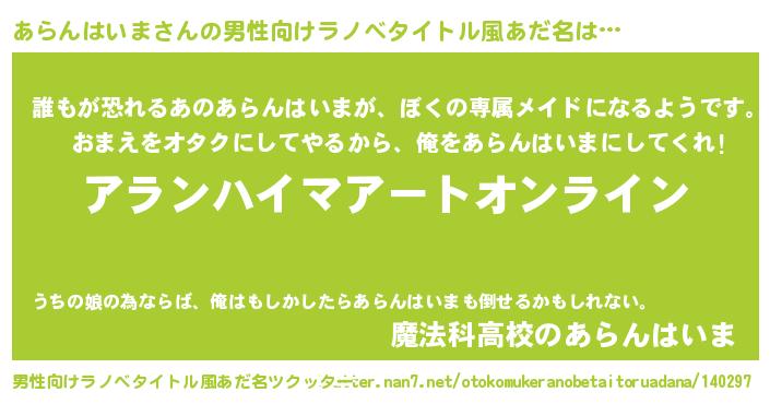 | 肩書あだ名 | 『あらんはいま社長令嬢』 |