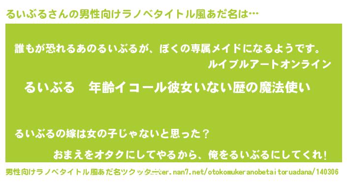 | 女子向けラノベタイトル風あだ名 | 『るいぶるの玉の輿計画!』 |