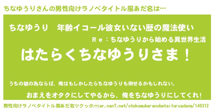 | 欧米人風あだ名 | 『アンジェラ・ちなゆうり』 |