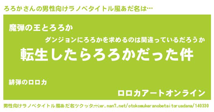 | 胡散臭い通販商品みたいなあだ名 | 『世界中を虜にした世界で10本だけ現存している希少なブランデー…その名も「ろろか」』 |