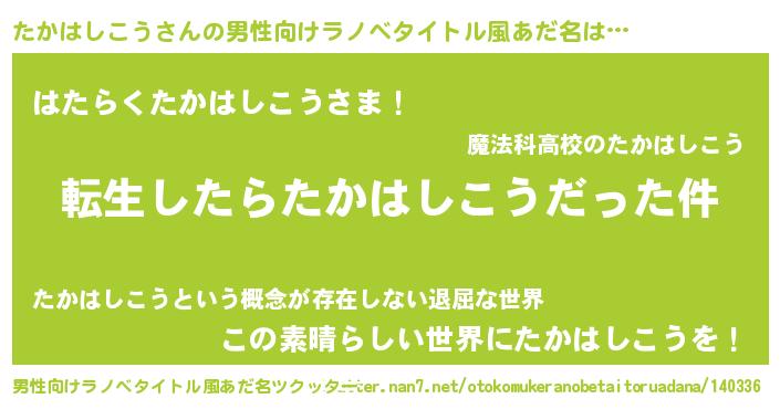 | 女子向けラノベタイトル風あだ名 | 『たかはしこうの玉の輿計画!』 |
