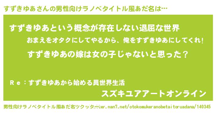 | 女子向けラノベタイトル風あだ名 | 『すずきゆあ様がみてる』 |