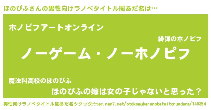 | 女子向けラノベタイトル風あだ名 | 『ほのぴふ恋絵巻』『ほのぴふ様がみてる』 |