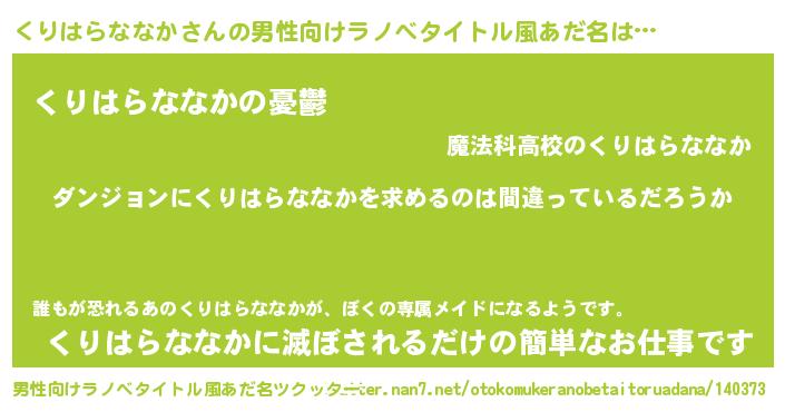 | 伝説のあだ名 | 『孤高の魔法使いくりはらななか』 |