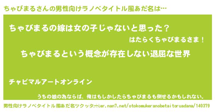 | 胡散臭い通販商品みたいなあだ名 | 『来世でも幸せになれる健康食品…その名も「ちゃびまる」』 |