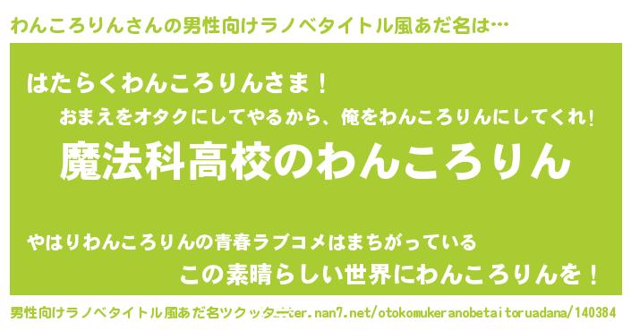 | 女子向けラノベタイトル風あだ名 | 『わんころりんアンティーク』 |