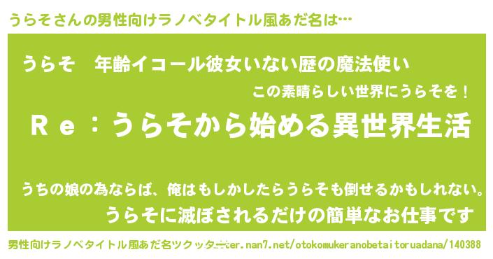 | ヒーロー風カッコイイあだ名 | 『最強戦士ウラソ』『仮面ウラダー』 |