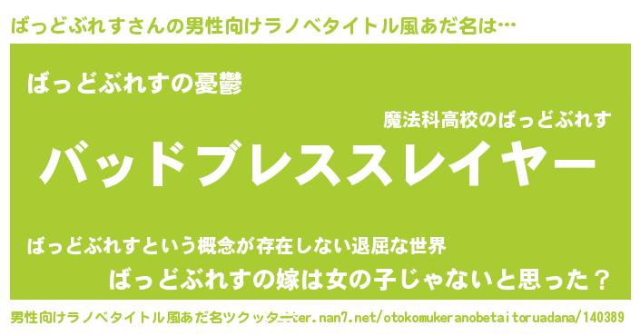 | 胡散臭い通販商品みたいなあだ名 | 『必ず成功する霊験あらたかなお札…その名も「ばっどぶれす」』 |