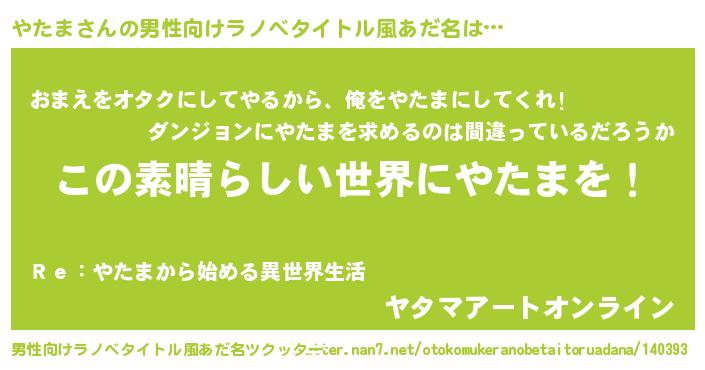 | 胡散臭い通販商品みたいなあだ名 | 『あなたにだけ特別に提供する世界で10本だけ現存している希少なブランデー…その名も「やたま」』 |