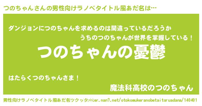 | 女子向けラノベタイトル風あだ名 | 『つのちゃん姫と円卓の騎士』 |