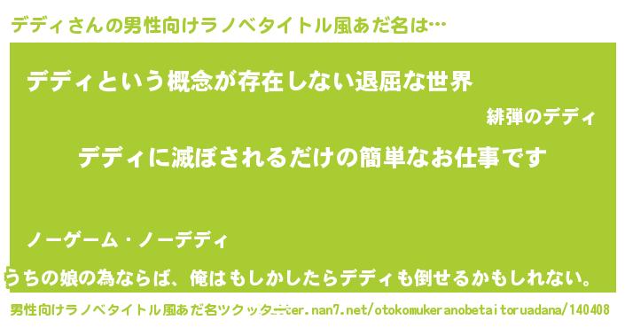 | 女子向けラノベタイトル風あだ名 | 『横柄デディと宰相陛下』『デディ恋絵巻』 |