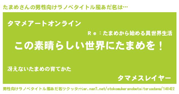 | 胡散臭い通販商品みたいなあだ名 | 『あなたにだけ特別に提供する限定10本のレアな日本酒…その名も「たまめ」』 |