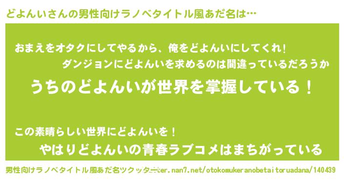 どよんいさんの男性向けラノベタイトル風あだ名をツクッター!