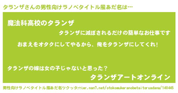 | 女子向けラノベタイトル風あだ名 | 『タランザ夫妻のなれそめ』 |