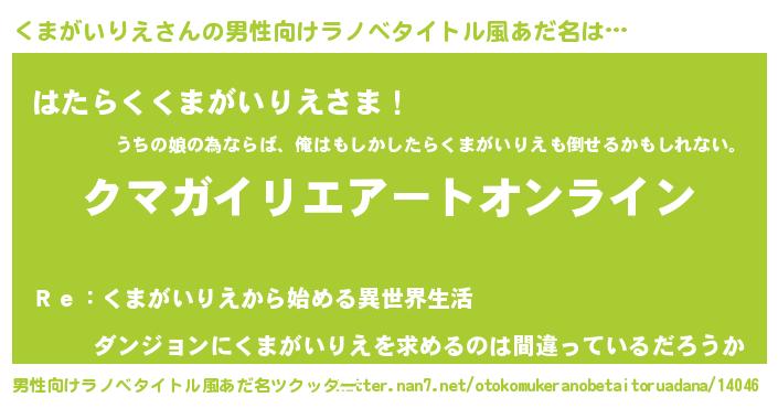 | 胡散臭い通販商品みたいなあだ名 | 『億万長者になれる水晶球…その名も「くまがいりえ」』 |