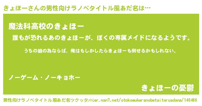 | ファンタジー風あだ名 | 『エターナルキョホーー』『ゼキョトゥ』 |