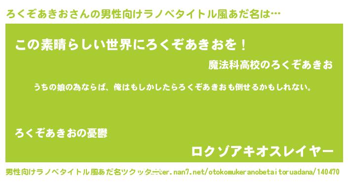 | ファンタジー風あだ名 | 『エターナルロクゾアキオー』 |