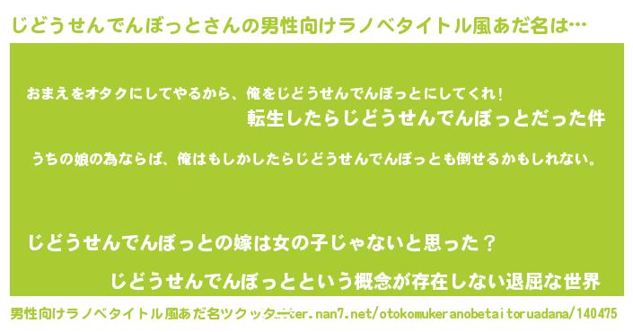 | 女子向けラノベタイトル風あだ名 | 『じどうせんでんぼっとの婚約者』 |