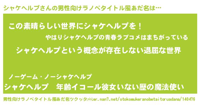 | 意味不明あだ名 | 『永久保存シャケヘルプ』 |