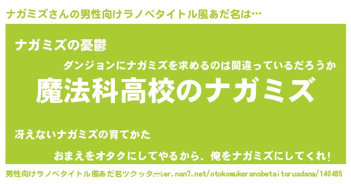 | ヒーロー風カッコイイあだ名 | 『サイバー戦士ナガミズ』『黄金騎士ナガ』 |