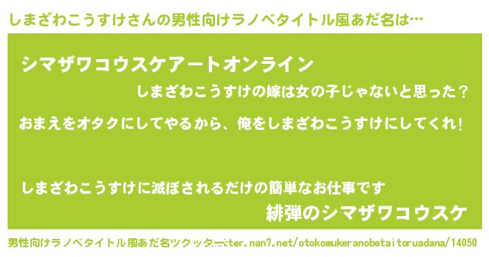 | 胡散臭い通販商品みたいなあだ名 | 『100人中100人が認めたマグネット磁石…その名も「しまざわこうすけ」』 |