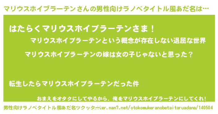 | 女子向けラノベタイトル風あだ名 | 『マリウスホイブラーテン様がみてる』 |
