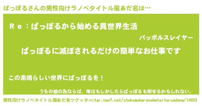| 女子向けラノベタイトル風あだ名 | 『横柄ぱっぽると宰相陛下』 |