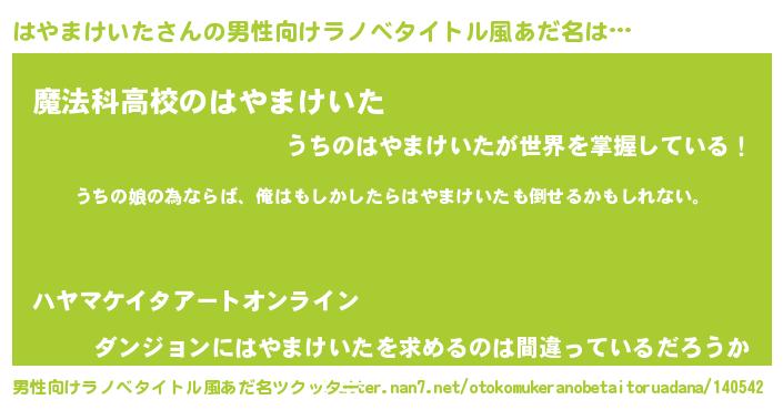| 女子向けラノベタイトル風あだ名 | 『はやまけいたの婚約者』 |