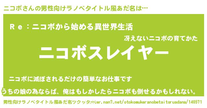 | ヘコむあだ名 | 『牛乳』『ニコボ(笑)』『ニコぷりん』 |